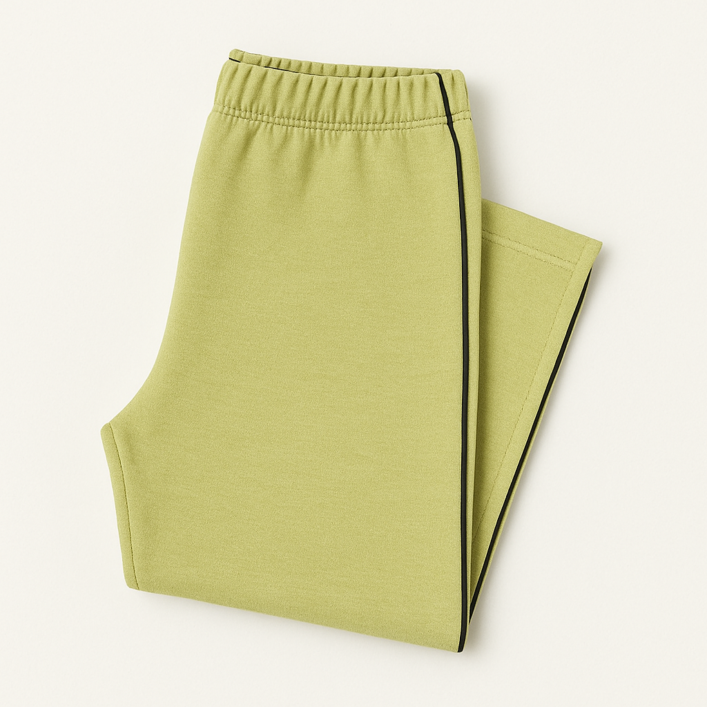 Die schwarze Ziernaht entlang der Seiten setzt einen klaren Kontrast und verleiht der Hose eine stilvolle, sportliche Note. Das weiche, angenehme Material macht sie ideal für Freizeit, Alltag oder gemütliche Stunden zu Hause.