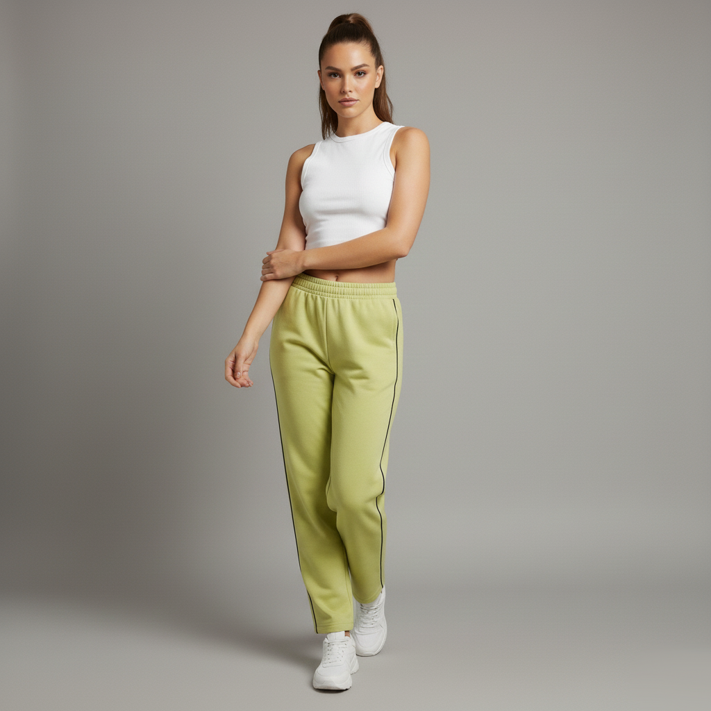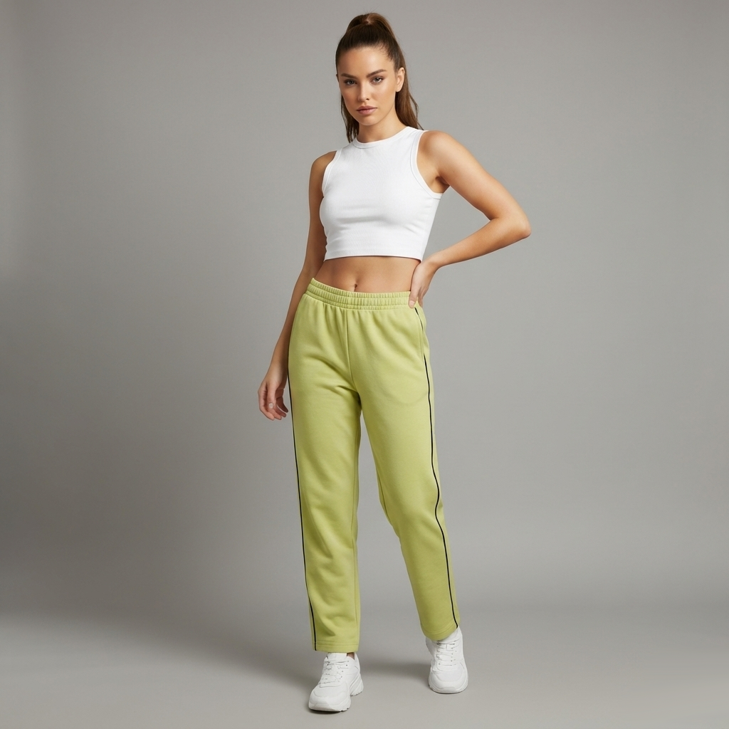 Damen Trainingshose in Hellgrün mit schwarzer Seitenziernaht