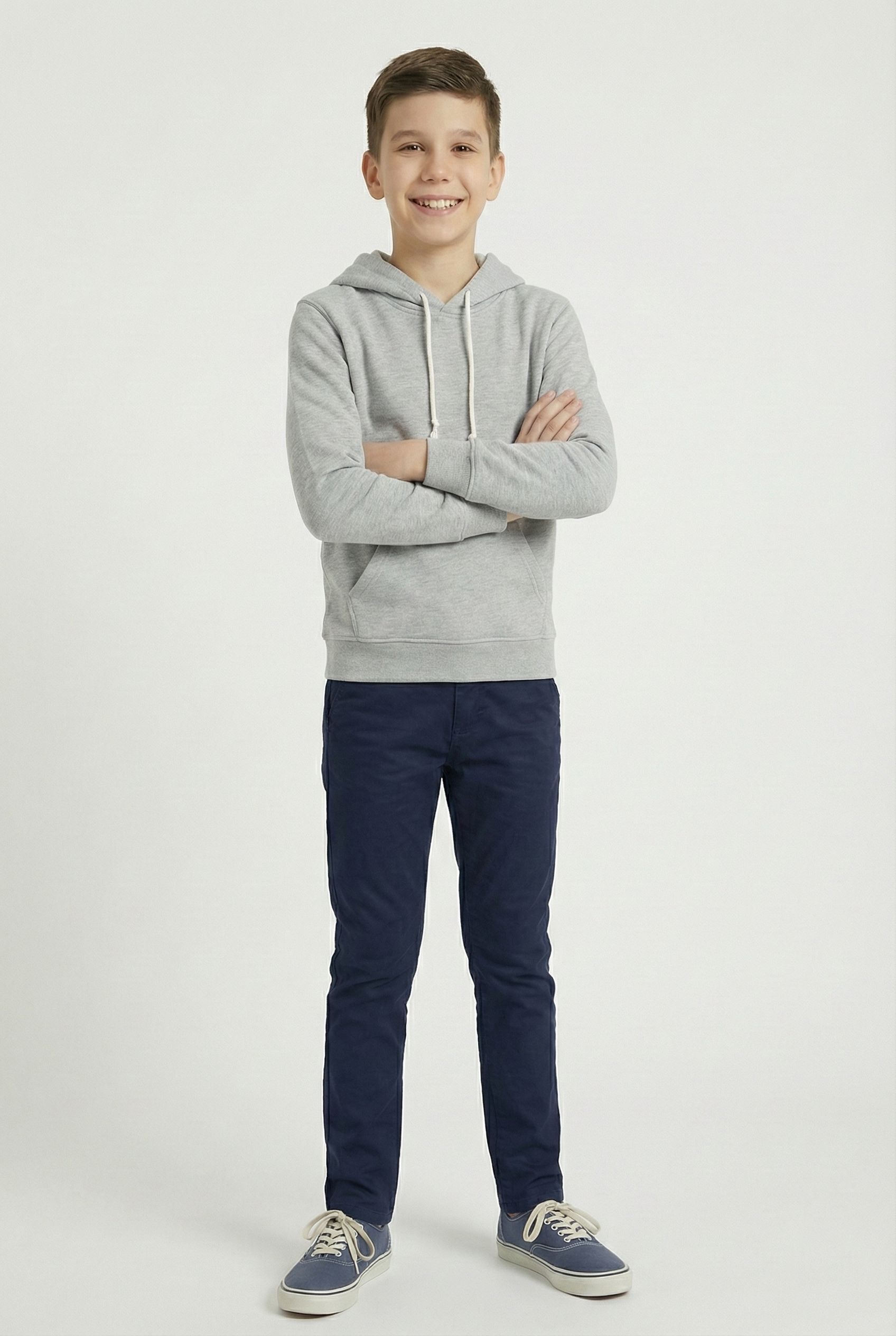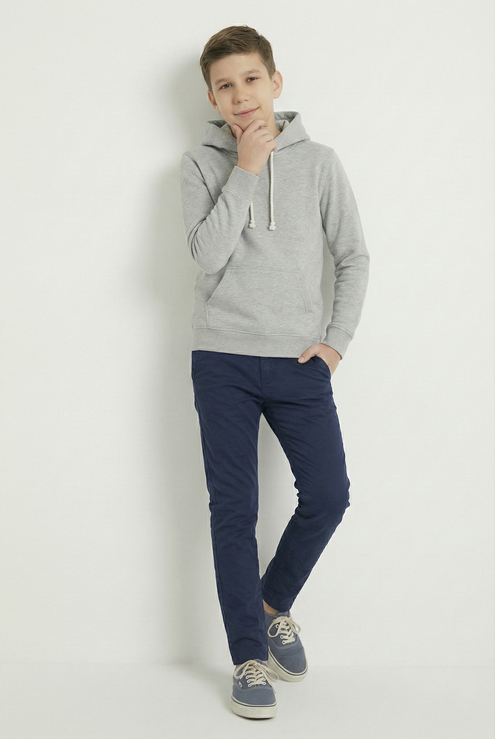 Kinder Hoodie – Hellgrau mit Kängurutasche