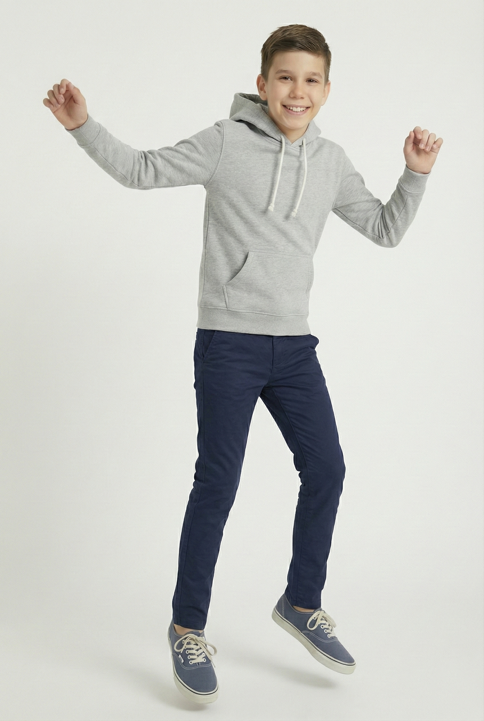 Dieser hellgraue Kinder Hoodie ist ein echter Allrounder. Der neutrale Farbton passt zu jedem Outfit und macht den Hoodie zum perfekten Begleiter für Schule, Freizeit und Alltag. Dank der weichen Baumwollmischung ist er angenehm auf der Haut und gleichzeitig robust genug für aktive Kids.