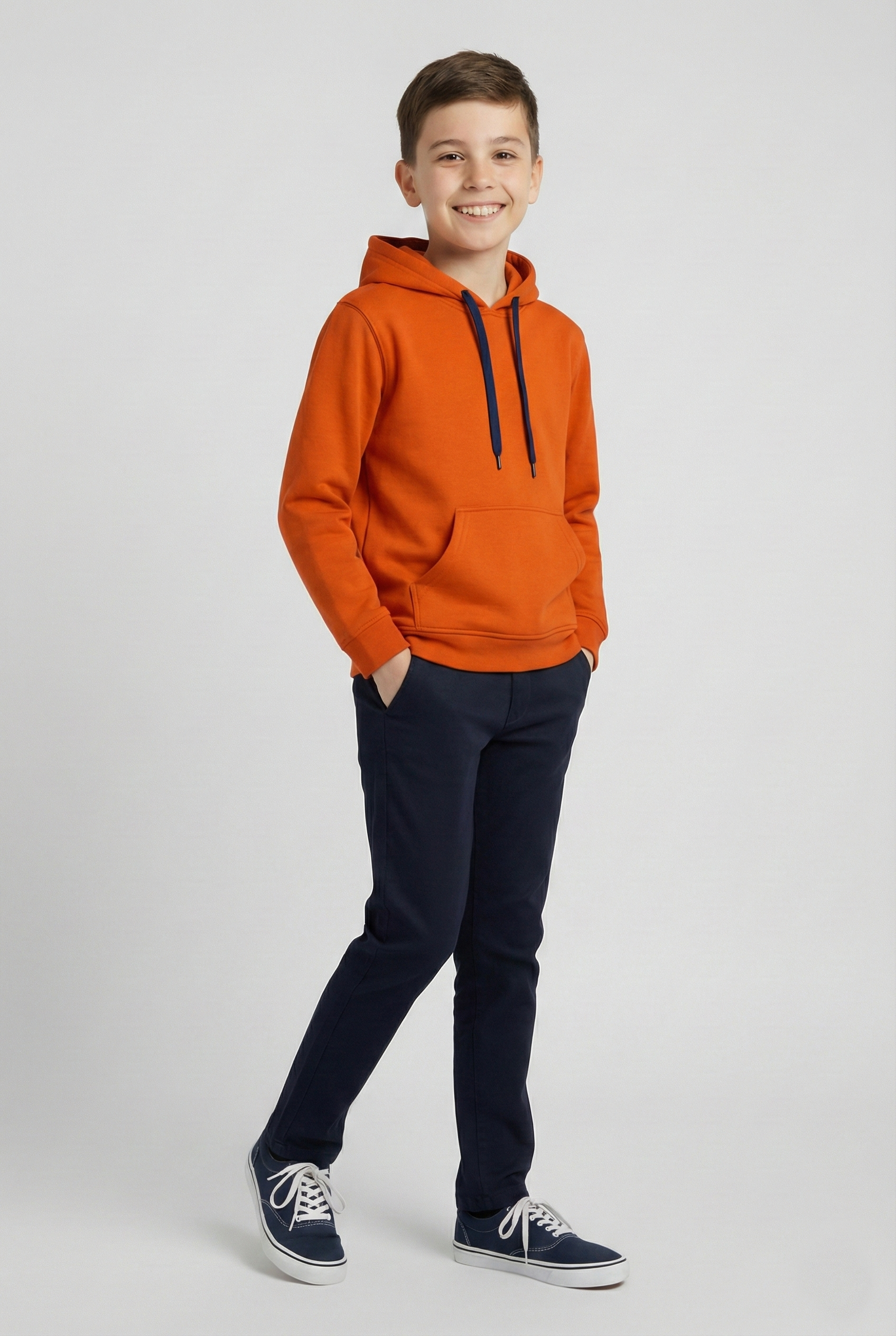 Knalliger Kinder Hoodie in Orange – bequem, robust und perfekt für aktive Kids.