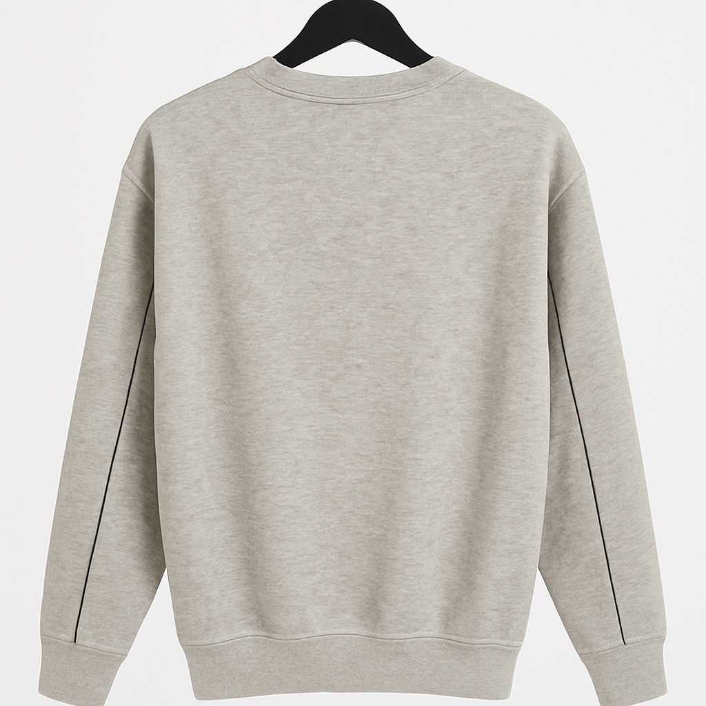 Zeitloser Unisex Pullover in Hellgrau mit feinen Ziernähten – schlicht, bequem und vielseitig kombinierbar.